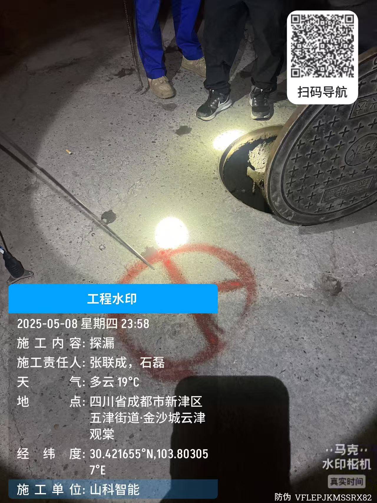 四川新津海天水司漏點周圍環(huán)境復雜,埋深較高,300口徑鑄鐵管道,埋深1.5米,周圍有煤氣管道和廢舊水管,極其影響判斷,依靠山科漏損漏損團隊的經(jīng)驗及先進設備,成功找到漏點,進行開挖。